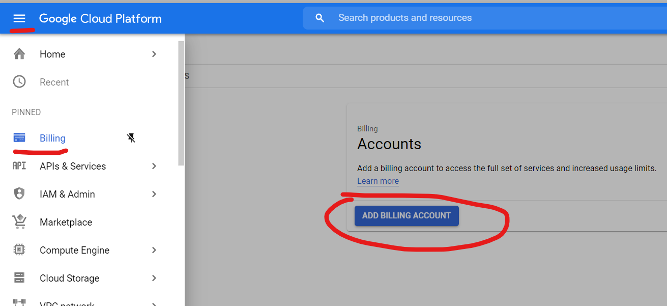 Klikněte na tlačíkto Add billing account a projděte celým procesem nastavení